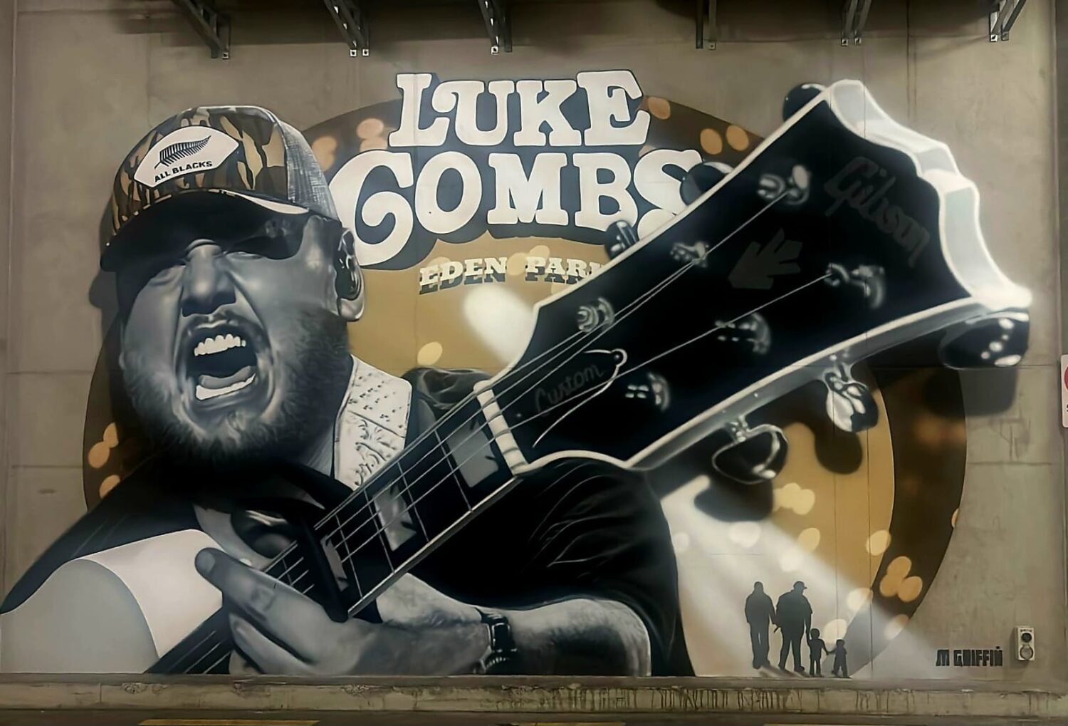 To celebrate the event, artist Matt Griffin was commissioned to create a mural of Luke Combs in the venue’s Players’ Tunnel. This artwork, Griffin’s second at Eden Park, is now a permanent feature of the stadium.