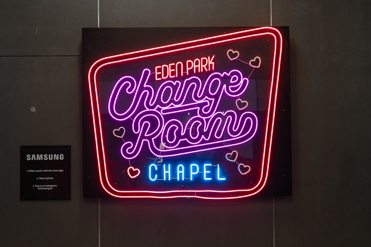 At the same time, Eden Park commissioned two further pieces: a PT Barnum quote, “If you believe, you will achieve” (a favourite quote of Eden Park CEO, Nick Sautner) and signage for the stadium’s in-house wedding venue, affectionately named the Change Room Chapel.