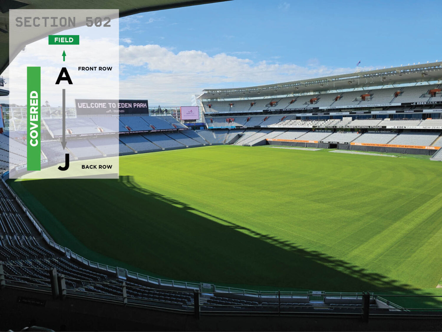 - Individual seats in University of Auckland North Stand Level 5