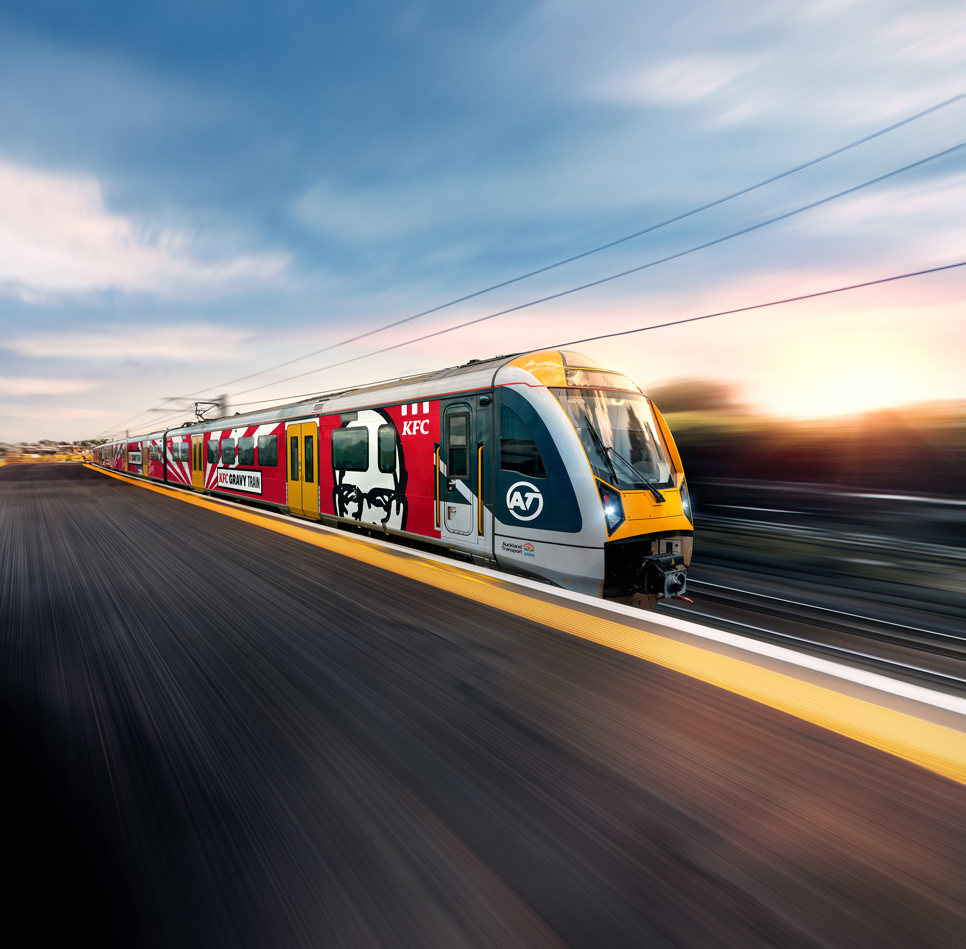 The KFC Gravy Train, KFC’s first-ever wrapped train delivery service in celebration of their partnership with the Blues, offering a free-on-board experience open to anyone with a ticket to the Blues vs Force game travelling to Eden Park ahead of the match on Friday, 5th April.