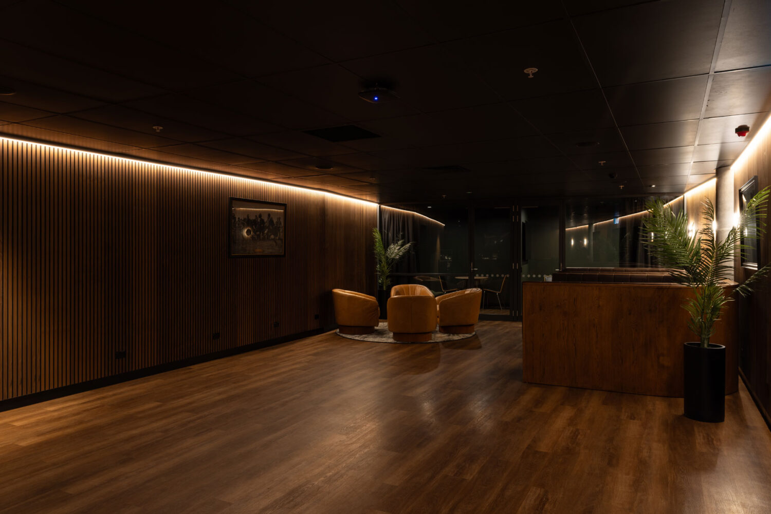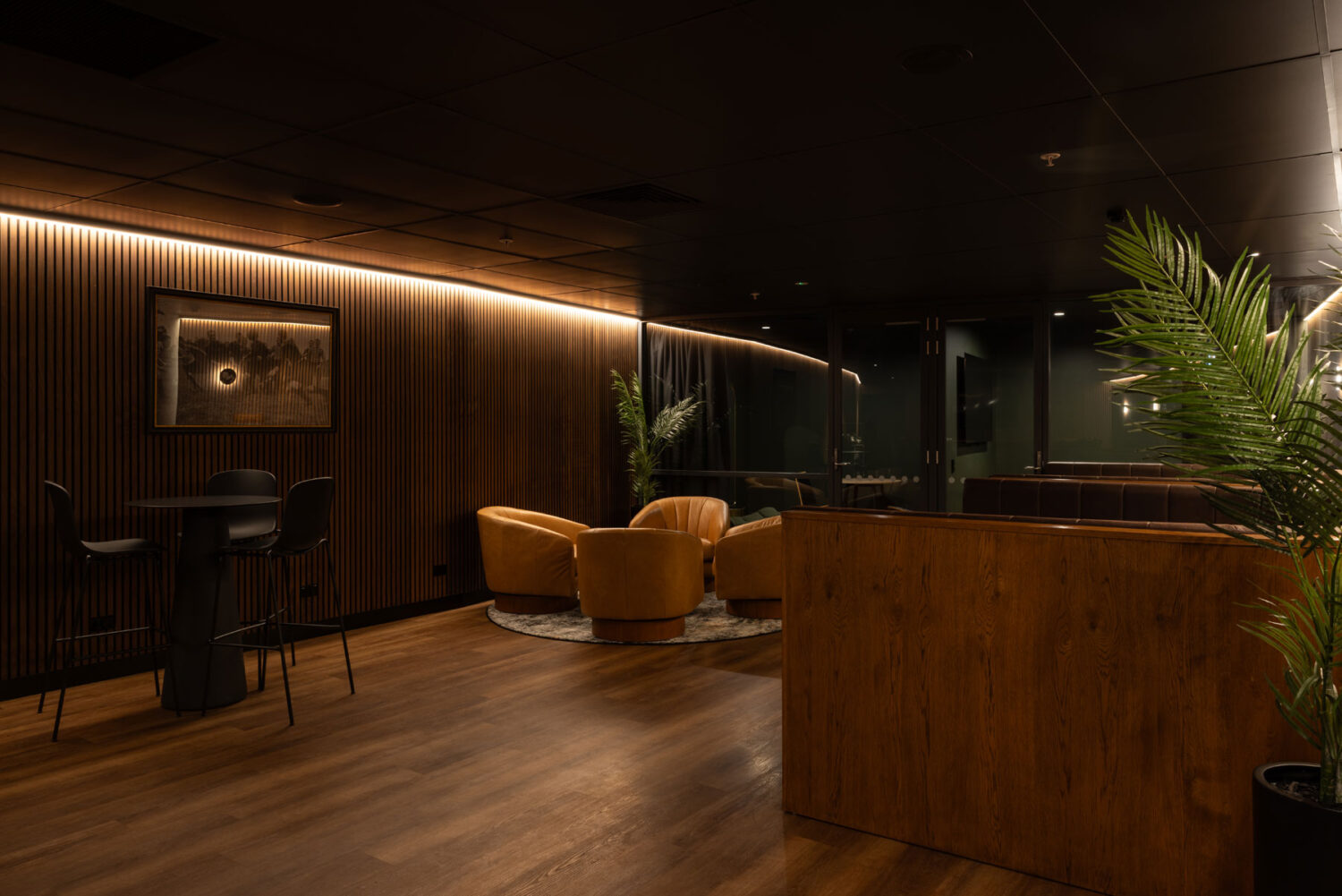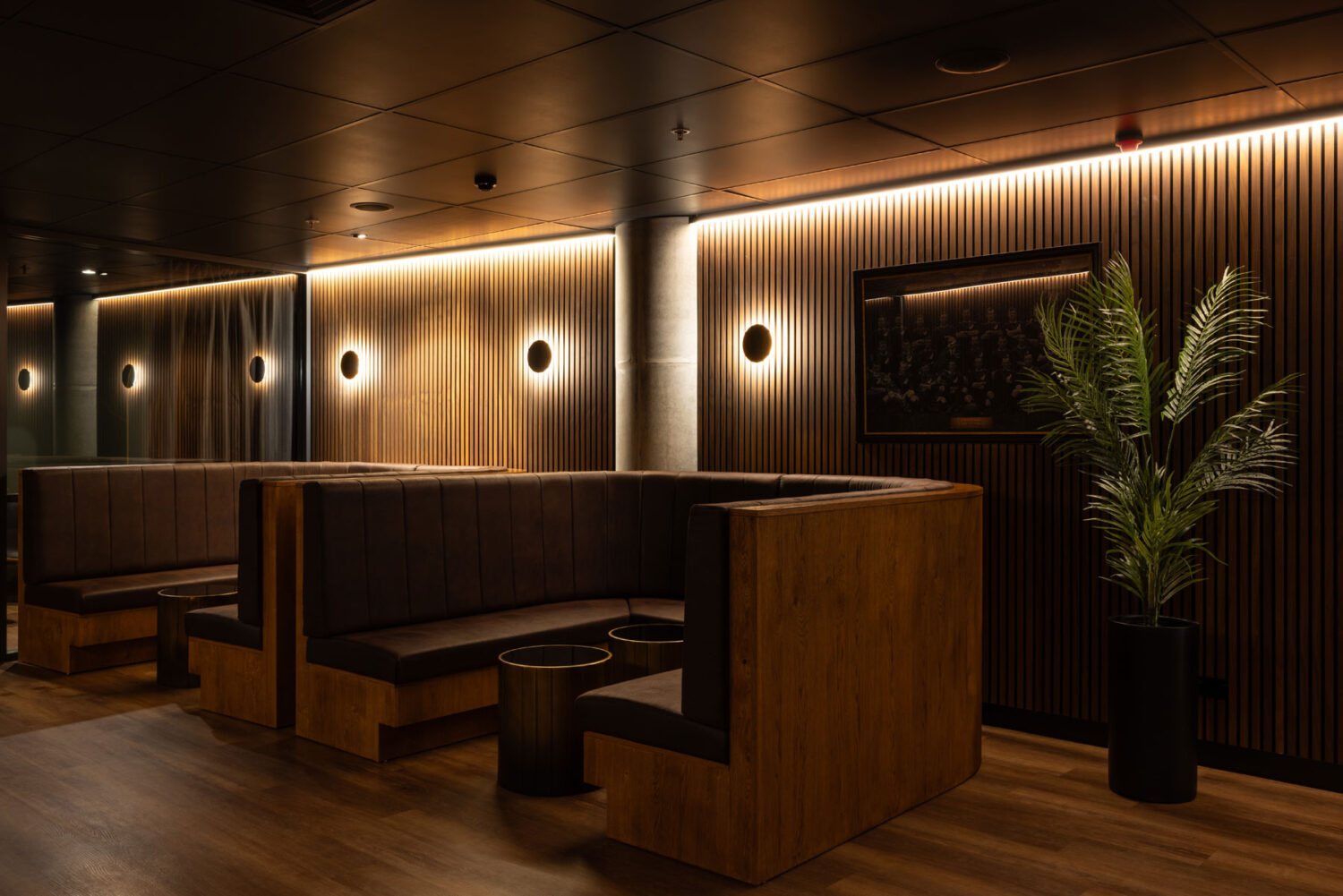 With its unique timber wall finishes and sleek black door, it really is an exceptional space within our stadium.