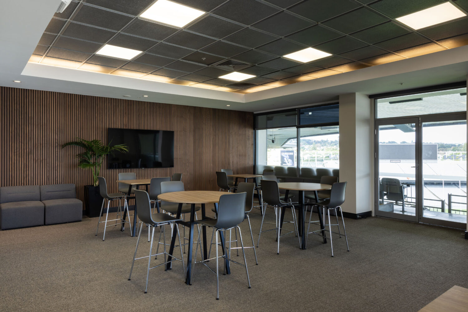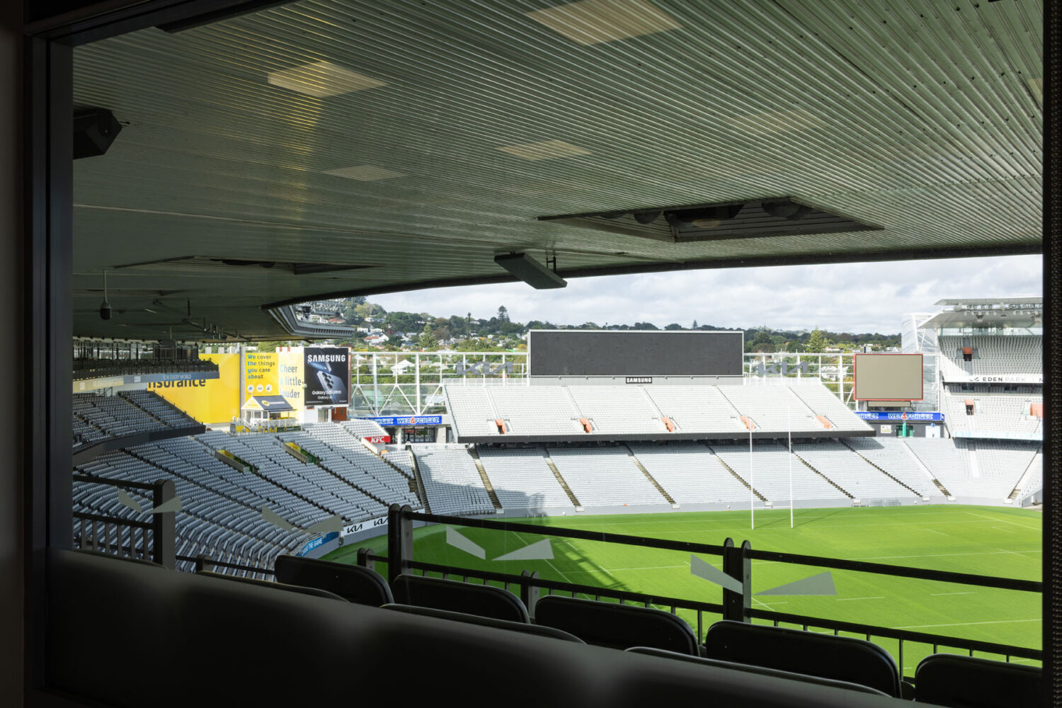 Located in the North Stand of Eden Park, this room has spectacular views overlooking the Number 1 field, a built in kitchenette and can hold up to 22 people for a boardroom style meeting.
